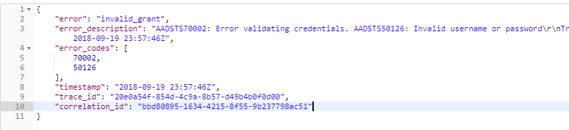 I activated the swithch for default client type to allow ropc in my appl. Jun 17, 2021 · on secure clusters backed by azure data lake (gen1 or gen2), when domain users sign in to the cluster services through hdi gateway (like signing in to the apache ambari portal), hdi gateway will try to obtain an oauth token from azure active directory (azure ad) first, and then get a kerberos ticket from azure ad ds. The user was not able to sign in because the user did not enter the right credentials. May 08, 2019 · keep getting aadsts50126: Invalid username or password for no valid reason.